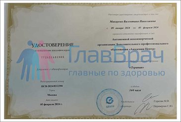 «Медицинский учебно-научный клинический центр им. П.В. Мандрыка» Мин. Обороны РФ «Терапия»