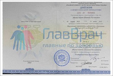 Диплом «Лечебное дело». Федеральное государственное бюджетное военное образовательное учреждение высшего образования «Военно-медицинская академия имени С.М. Кирова» Министерства обороны Российской Федерации. Город Санкт-Петербург