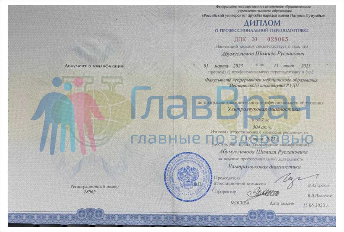 Диплом «Хирургия». Федеральное государственное бюджетное военное образовательное учреждение высшего образования «Военно-медицинская академия имени С.М. Кирова» Министерства обороны Российской Федерации. Город Санкт-Петербург