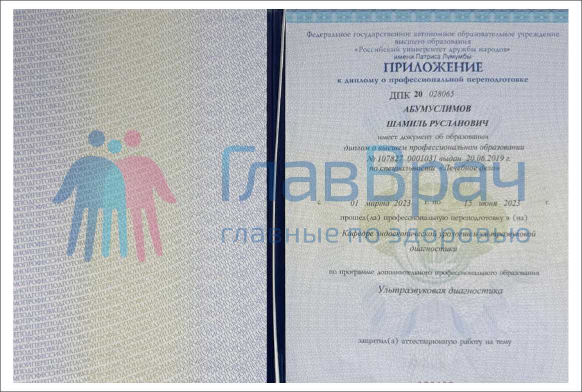 Диплом «Лечебное дело». Федеральное государственное бюджетное военное образовательное учреждение высшего образования «Военно-медицинская академия имени С.М. Кирова» Министерства обороны Российской Федерации. Город Санкт-Петербург