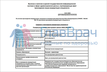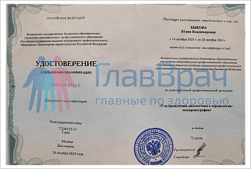 УДОСТОВЕРЕНИЕ «Российская медицинская академия непрерывного профессионального образования» Министерства здравоохранения Российской Федерации». «Ультразвуковая диагностика в кардиологии - эхокардиография».