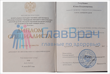 Диплом. РОССИЙСКАЯ ФЕДЕРАЦИЯ ФЕДЕРАЛЬНОЕ ГОСУДАРСТВЕННОЕ АВТОНОМНОЕ ОБРАЗОВАТЕЛЬНОЕ УЧРЕЖДЕНИЕ ВЫСШЕГО ОБРАЗОВАНИЯ «БЕЛГОРОДСКИЙ ГОСУДАРСТВЕННЫЙ НАЦИОНАЛЬНЫЙ ИССЛЕДОВАТЕЛЬСКИЙ УНИВЕРСИТЕТ» г. Белгород. ЛЕЧЕБНОЕ ДЕЛО.