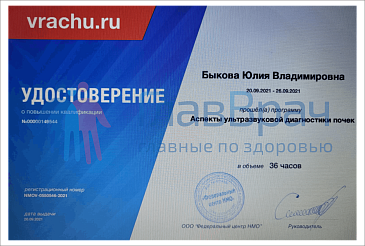 УДОСТОВЕРЕНИЕ "De, деральный центр НМО". Аспекты ультразвуковой диагностики почек.
