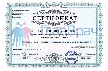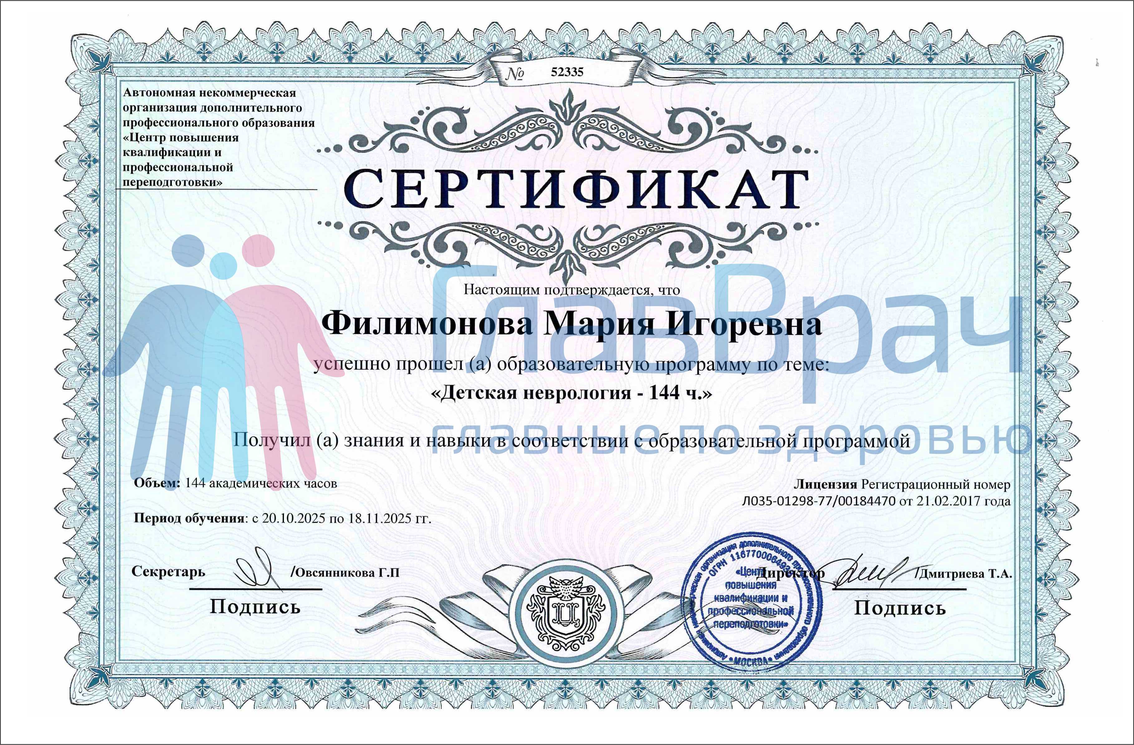 Удостоверение. Учебный центр ГБУЗ «ЦПРиН ДЗМ» «Практические вопросы нейрореабилитации»