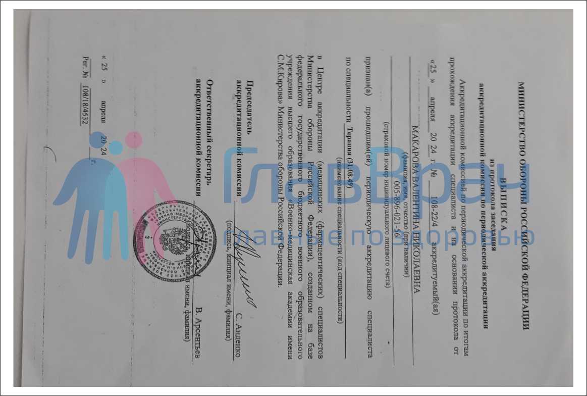 «Медицинский учебно-научный клинический центр им. П.В. Мандрыка» Мин. Обороны РФ «Терапия»