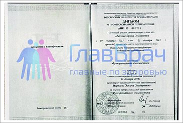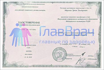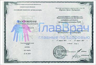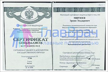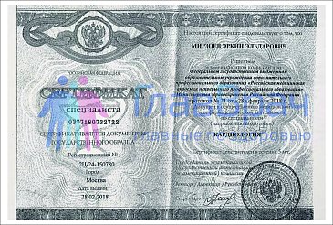 Сертификат специалиста по специальности «Терапия» ММА им И.М. Сеченова