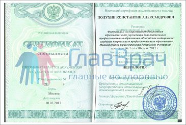 Российский национальный исследовательский медицинский университет имени Н.И. Пирогова. Специализация: «Неврология»