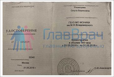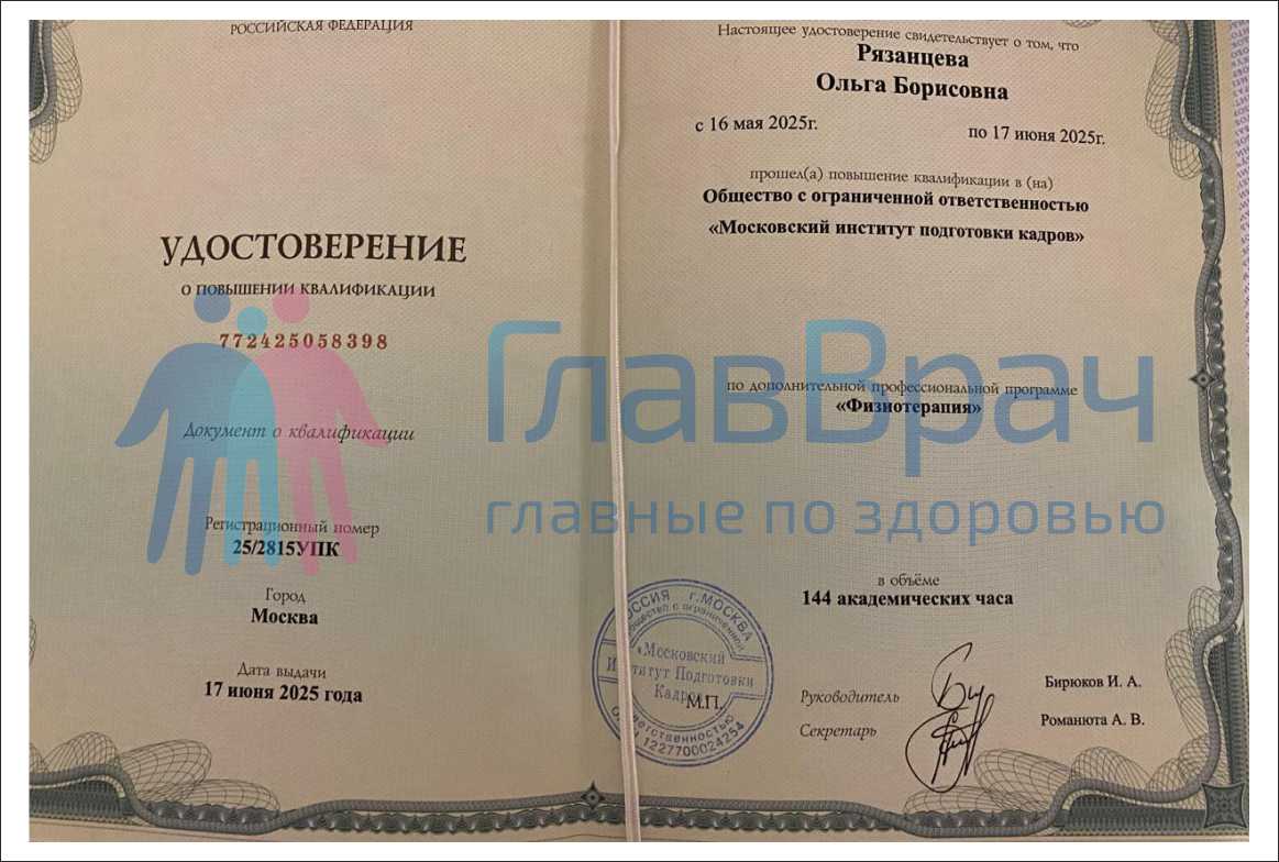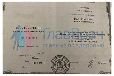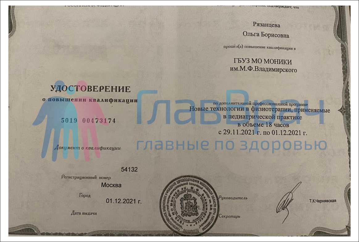 Удостоверение. Новые технологии в физиотерапии в педиатрии