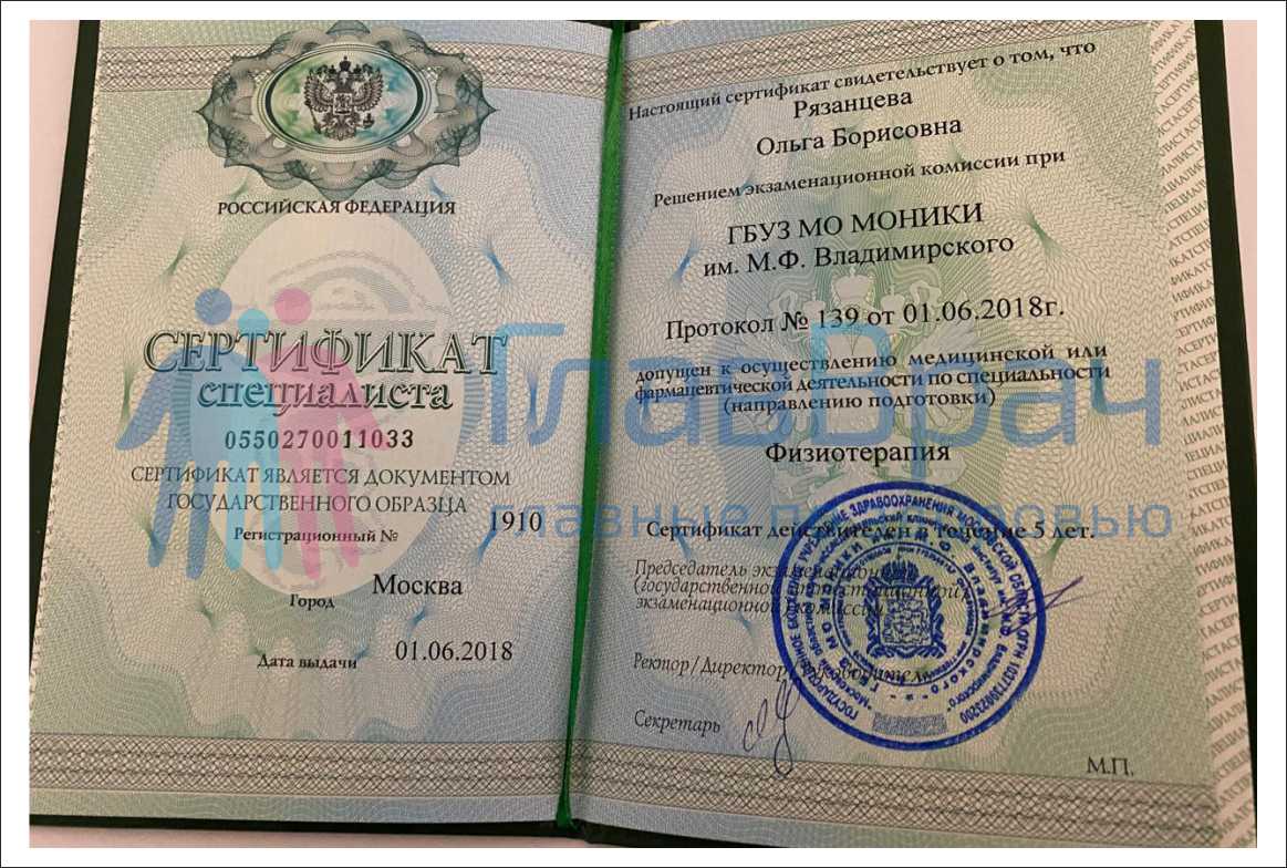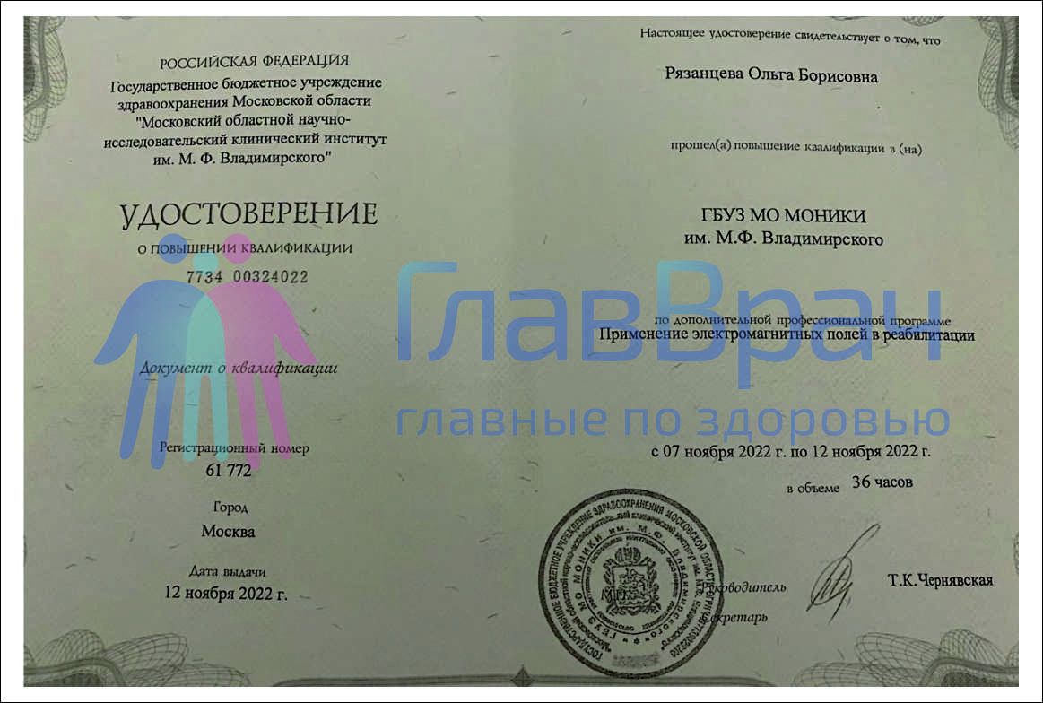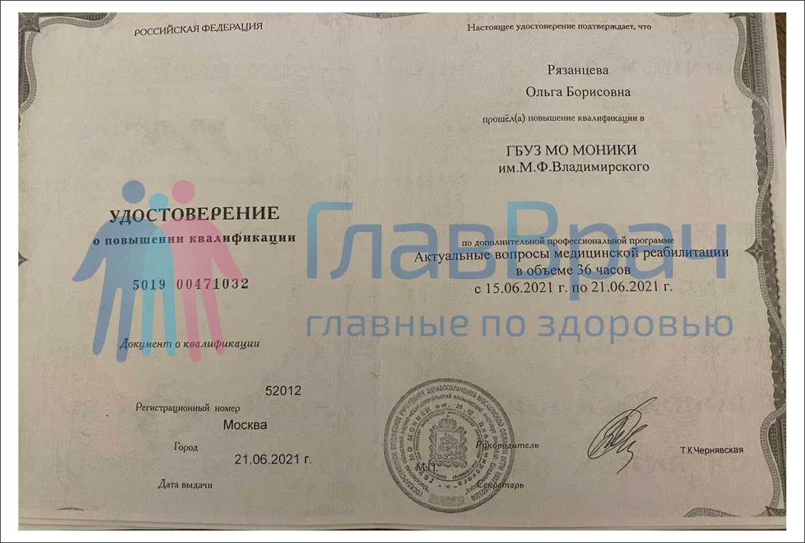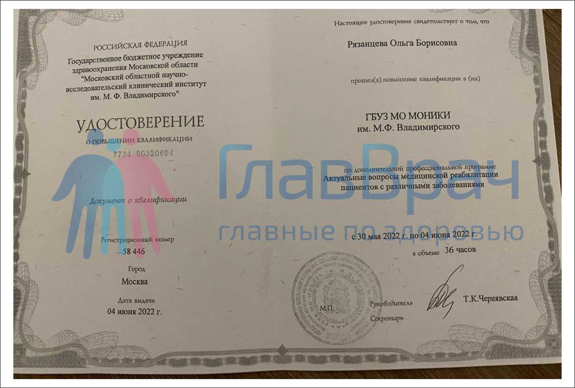 Удостоверение. Реабилитация пациентов с различными заболеваниями