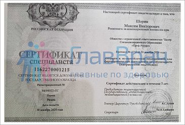 Удостоверение присвоена высшая квалификационная категория Департамент Здравоохранения г.Москва