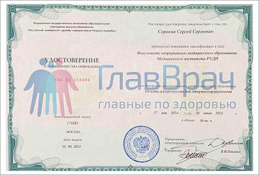 Сертификат Государственное бюджетное образовательное учреждение г.Москвы «Центр профессиональной подготовки кадров и последипломного образования Департамента здравоохранения города Москвы»