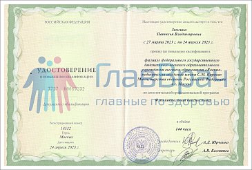 Удостоверение Врач-терапевт. Российский университет дружбы народов.